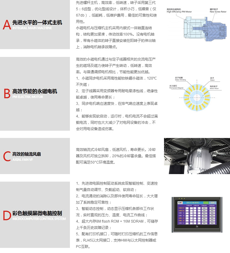 艾高APM永磁變頻雙螺桿空壓機(jī)系列,獲得國家認(rèn)證節(jié)能減排產(chǎn)品,實(shí)測節(jié)能30%以上;通過ISO9001:2008國際質(zhì)量管理體系認(rèn)證產(chǎn)品。國際節(jié)能減排和新能源產(chǎn)業(yè)博覽會“節(jié)能減排優(yōu)秀獎”。
